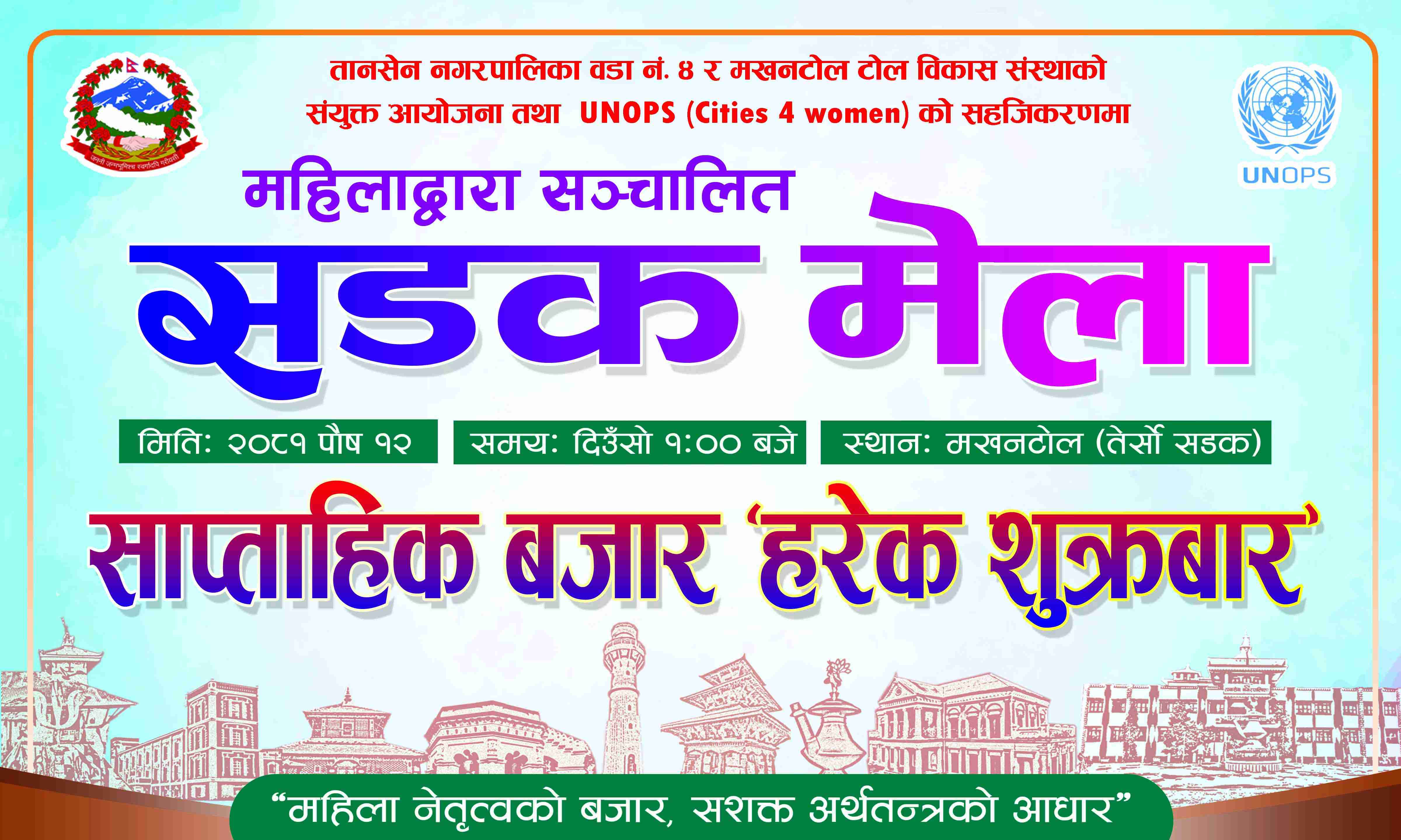 पाल्पाकाे तानसेन ४ मंखनटाेल तेस्रो सडकमा हरेक शुक्रबार महिला उधमीद्वारा सञ्चालन हुने साप्ताहिक बजारकाे शुभारम्भ भएको छ ।...