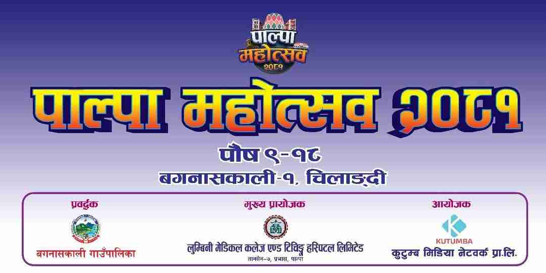 पाल्पा, जिल्लाको बगनासकाली गाउँपालिकाको प्रवद्र्धन र कुटुम्ब मिडिया नेटवर्क प्रालिको आयोजनामा मंगलबारदेखि बगनासकाल...