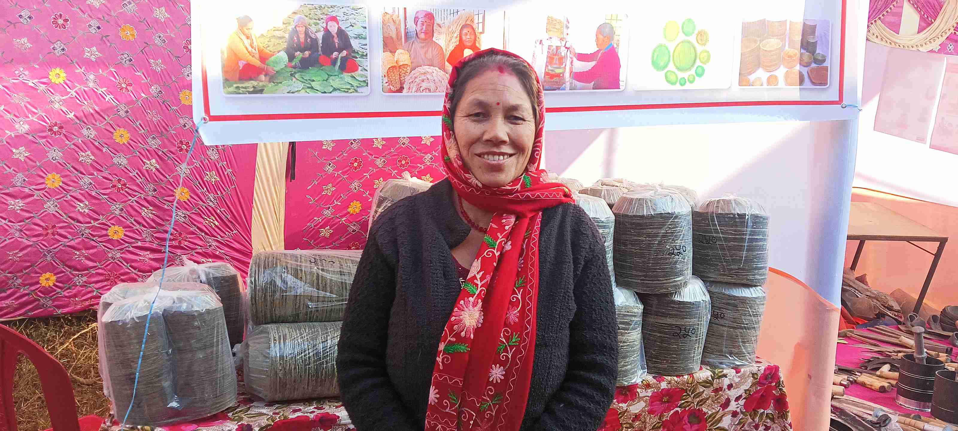 पाल्पा महोत्सवमा महिला उधमीहरूले दुना टपरी बनाउदै बेच्दै