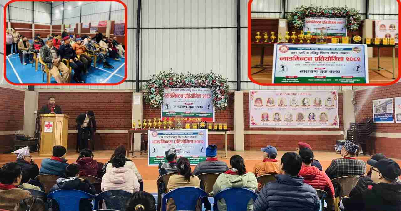 पाल्पा-नारायण युवा क्लबको आयोजनामा सम्पन्न वडा स्तरीय रनिङ शिल्ड मेन्स डबल ब्याडमिन्टन प्रतियोगिता २०८२ खेलकुद प्रतिस्पर...