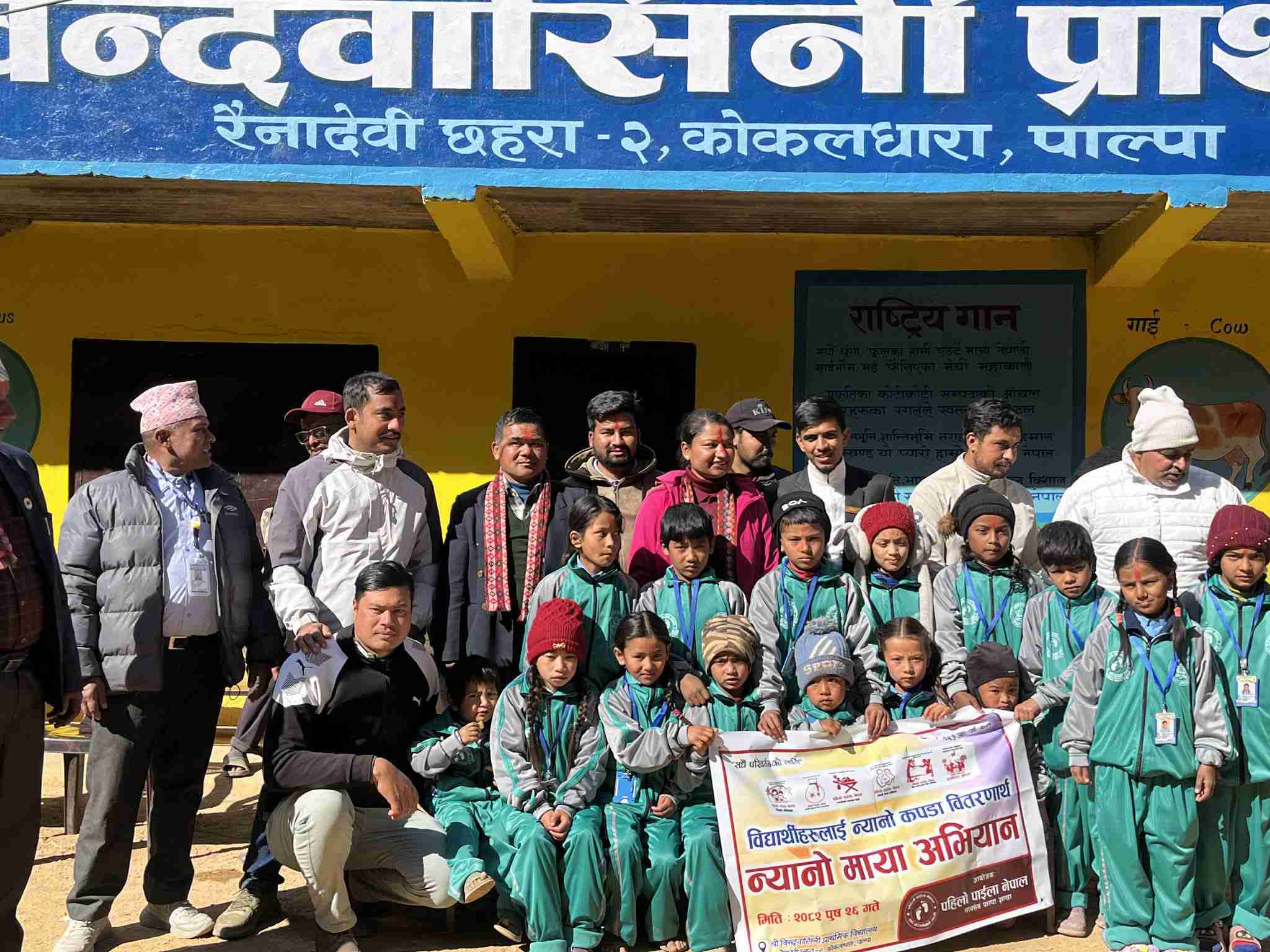 पाल्पा जिल्लाको रैनादेवी छहरा गाउँपालिका–२, कोकलधारास्थित विन्दवासिनी प्राथमिक विद्यालयमा न्यानो माया अभ...