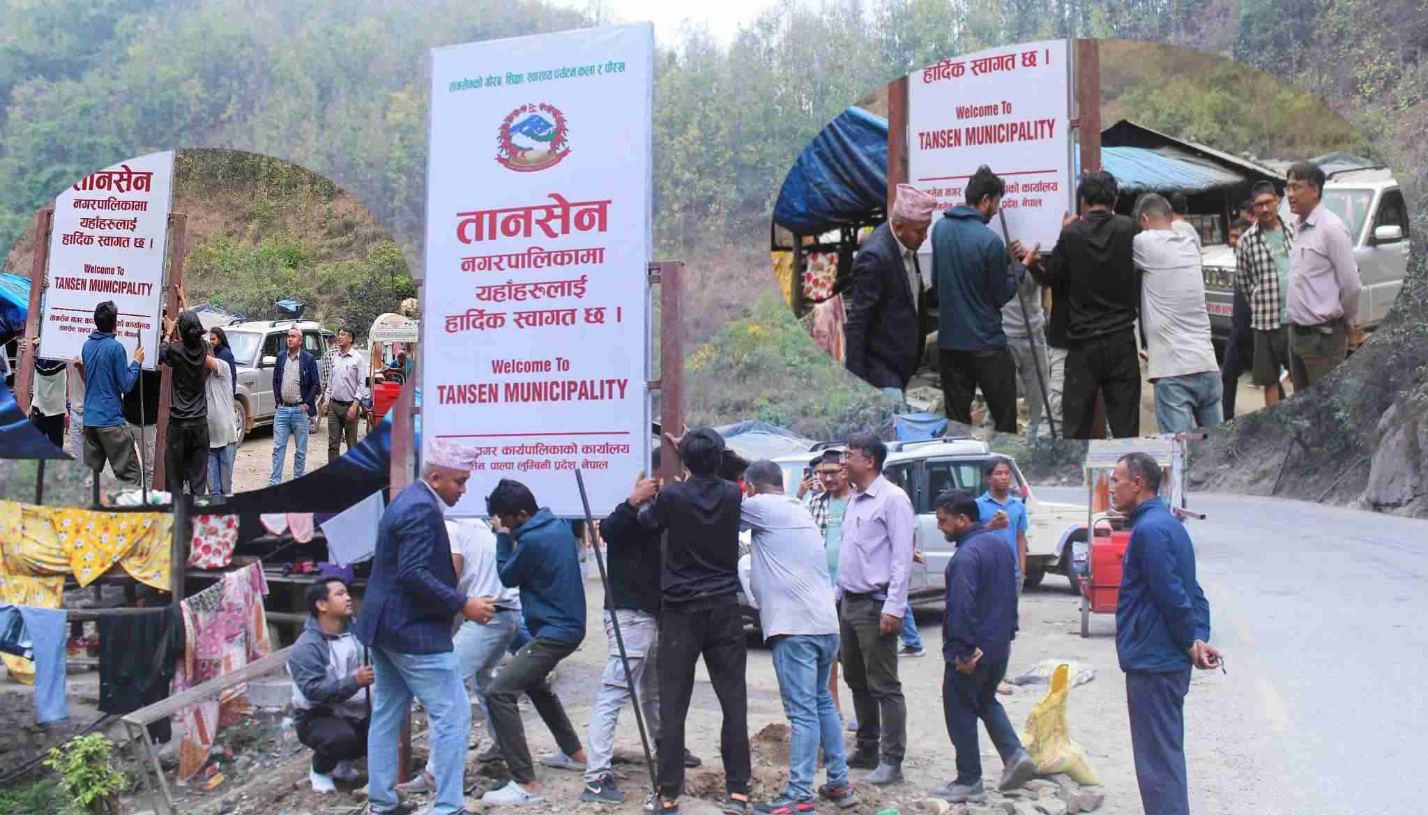 तानसेन नगरपालिकाले नगरका सिमानाहरूमा राख्याे स्वागत बाेर्ड