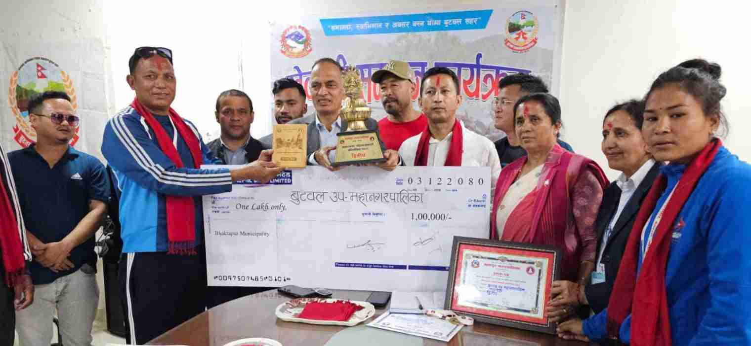 बुटवल- भक्तपुर नगरपालिकाले आयोजना गरेको अन्तर नगर महिला कबड्डी प्रतियोगिताको उपविजेता बुटवल उपमहानगरपालिकाको टीमलाई सम्म...