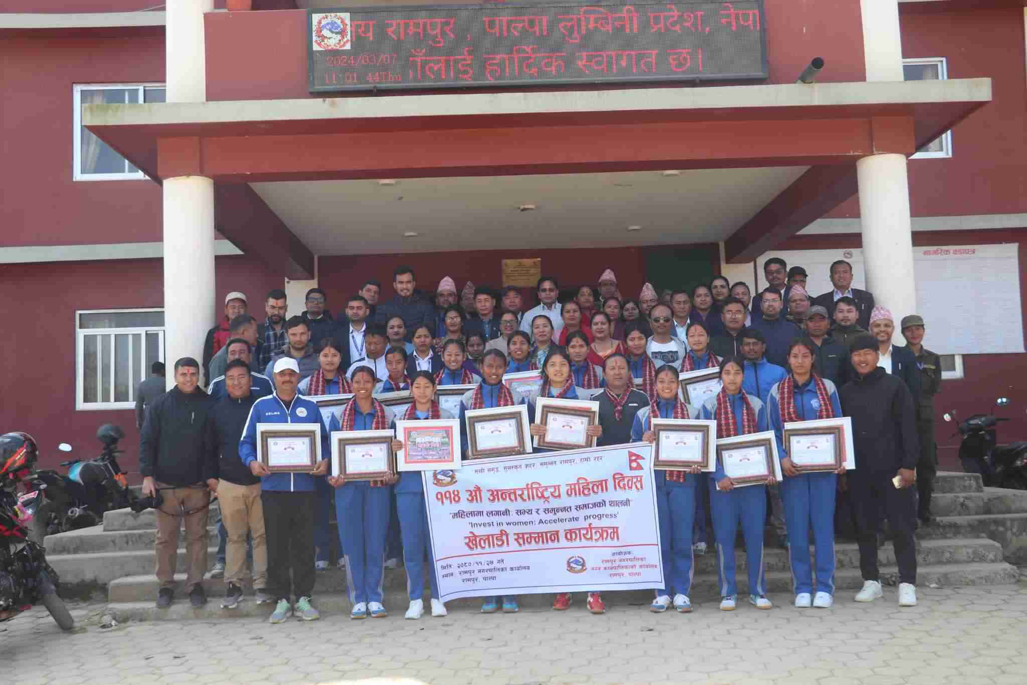 रामपुर नगरपालिकाद्वारा लुम्बिनी प्रदेशका महिला खेलाडीलाई सम्मान