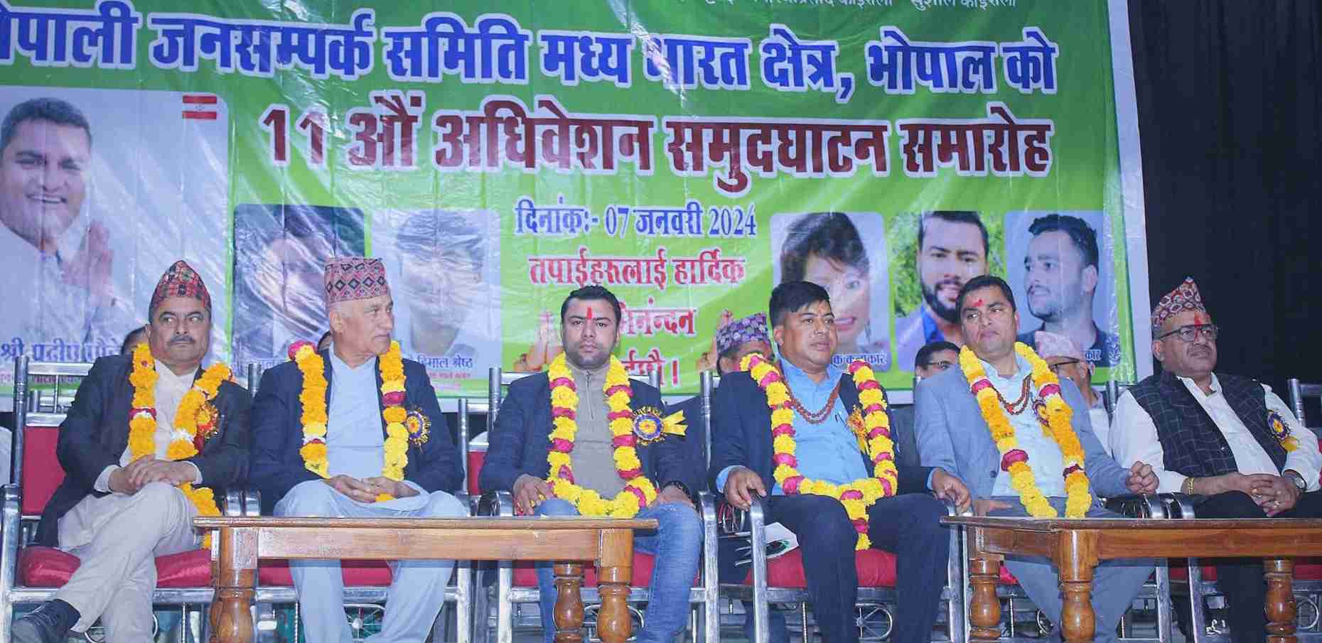 नेपाली जनसम्पर्क समिति मध्य भारत क्षेत्र,भाेपालकाे ११ औँ अधिवेशन सम्पन्न भएको छ । नेपाली जनसम्पर्क समिति मध्य भारत क्षेत...
