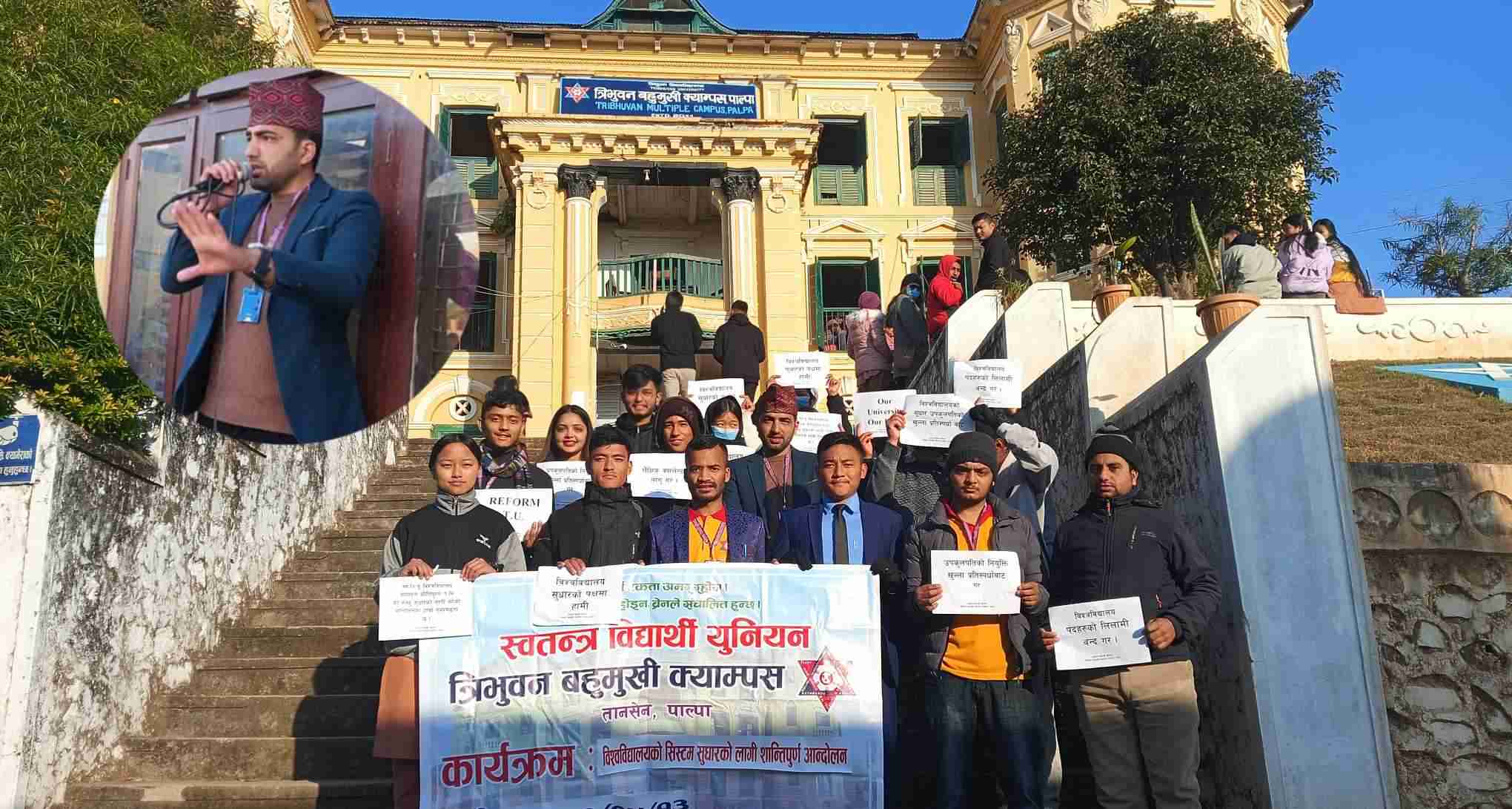 विश्वविद्यालयकाे सिस्टम सुधारकाे माग राख्दै पाल्पामा शान्तिपूर्ण...