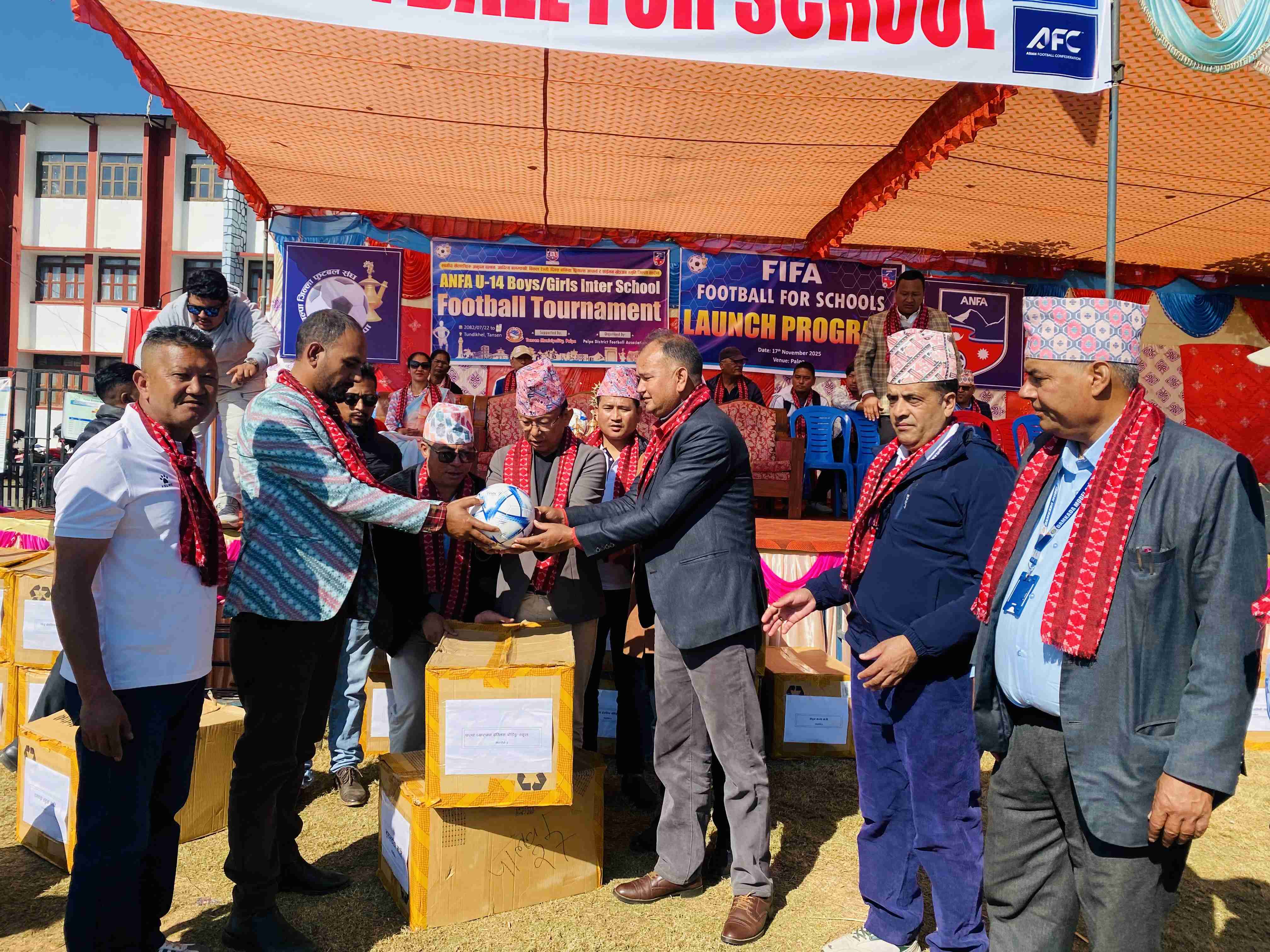 तानसेन (पाल्पा)— फिफाद्वारा सञ्चालन हुने ‘स्कूलहरूका लागि फुटबल वितरण कार्यक्रम तानसेन नगरपालिका, पाल्पामा औ...