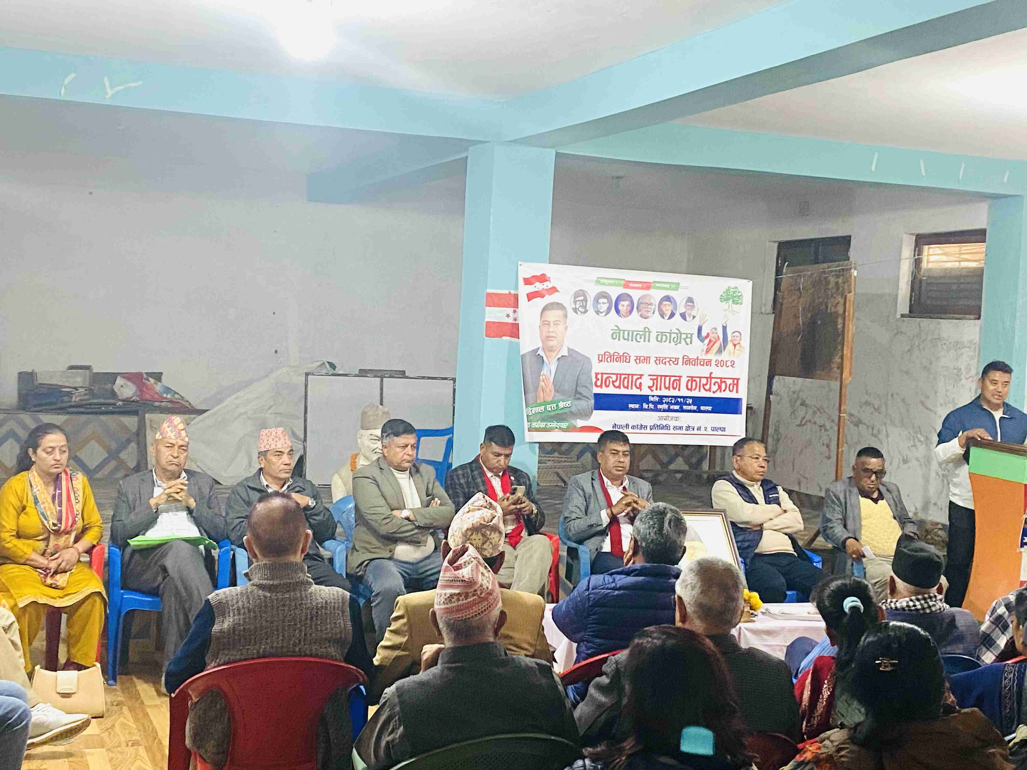 पाल्पा-प्रतिनिधि सभाको निर्वाचन सम्पन्न भएपछि नेपाली कांग्रेस पाल्पाले मतदाता, सुरक्षाकर्मी, कर्मचारी तथा सञ्चारमाध्यमप्...