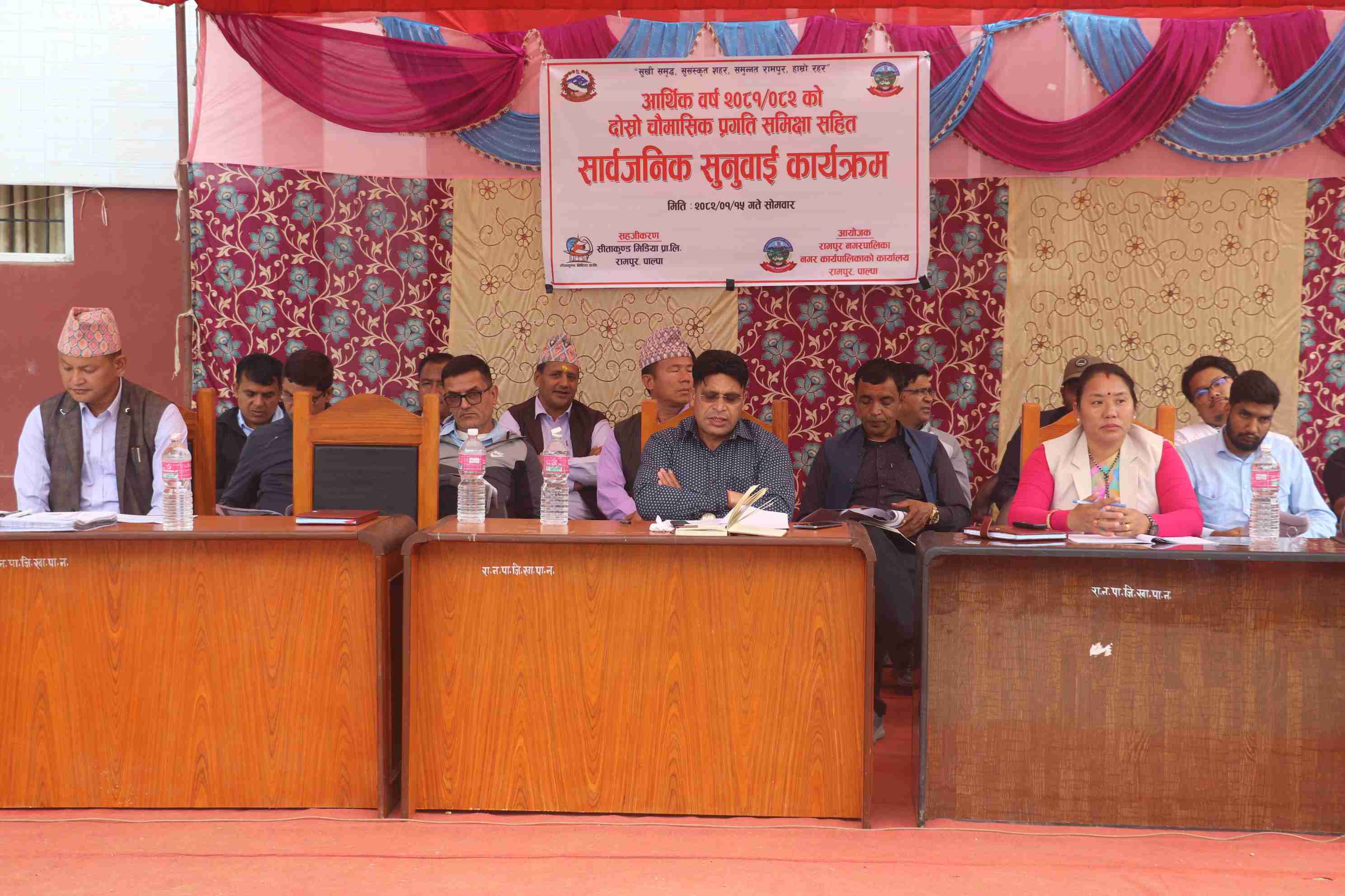 पाल्पा, रामपुर नगरपालिकाले दोस्रो चौमासिक प्रगति समिक्षा सहित सार्वजनिक सुनुवाई गरेको छ । सोमबार आर्थिक वर्ष २०८१÷...