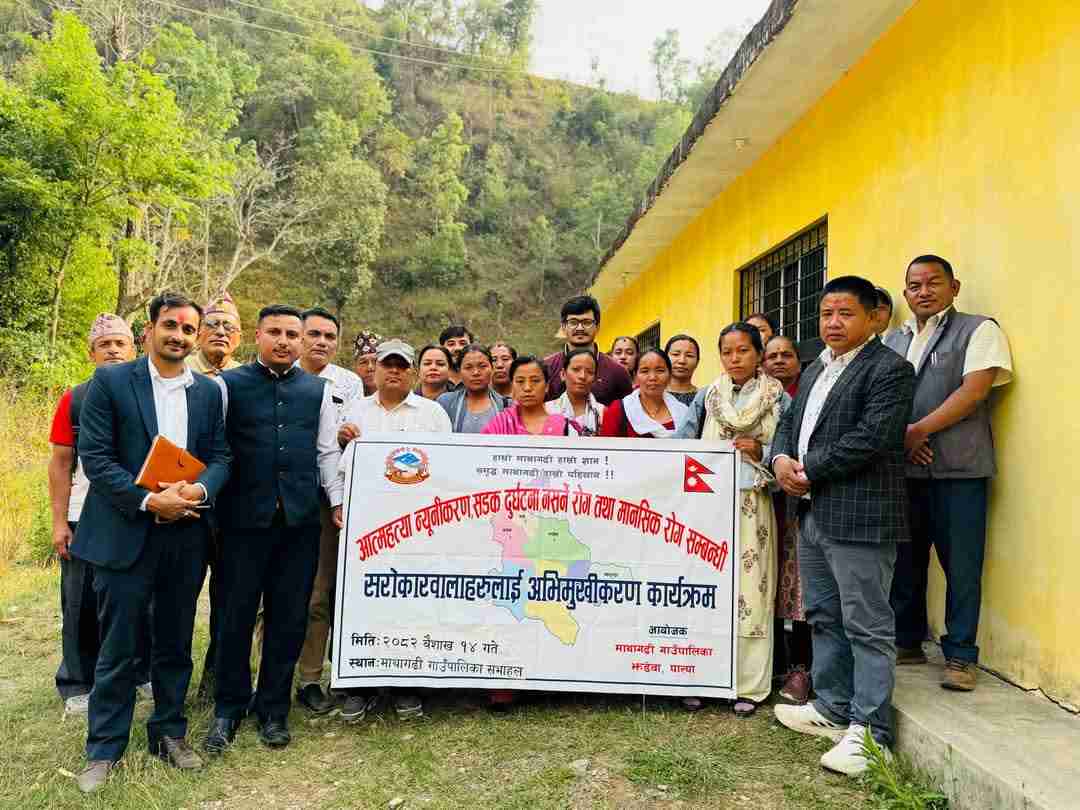 पाल्पा — माथागढी गाउँपालिकाको आयोजनामा आत्महत्या न्यूनीकरण, सडक दुर्घटना न्यूनीकरण, नसर्ने रोग नियन्त्रण तथा मानसि...