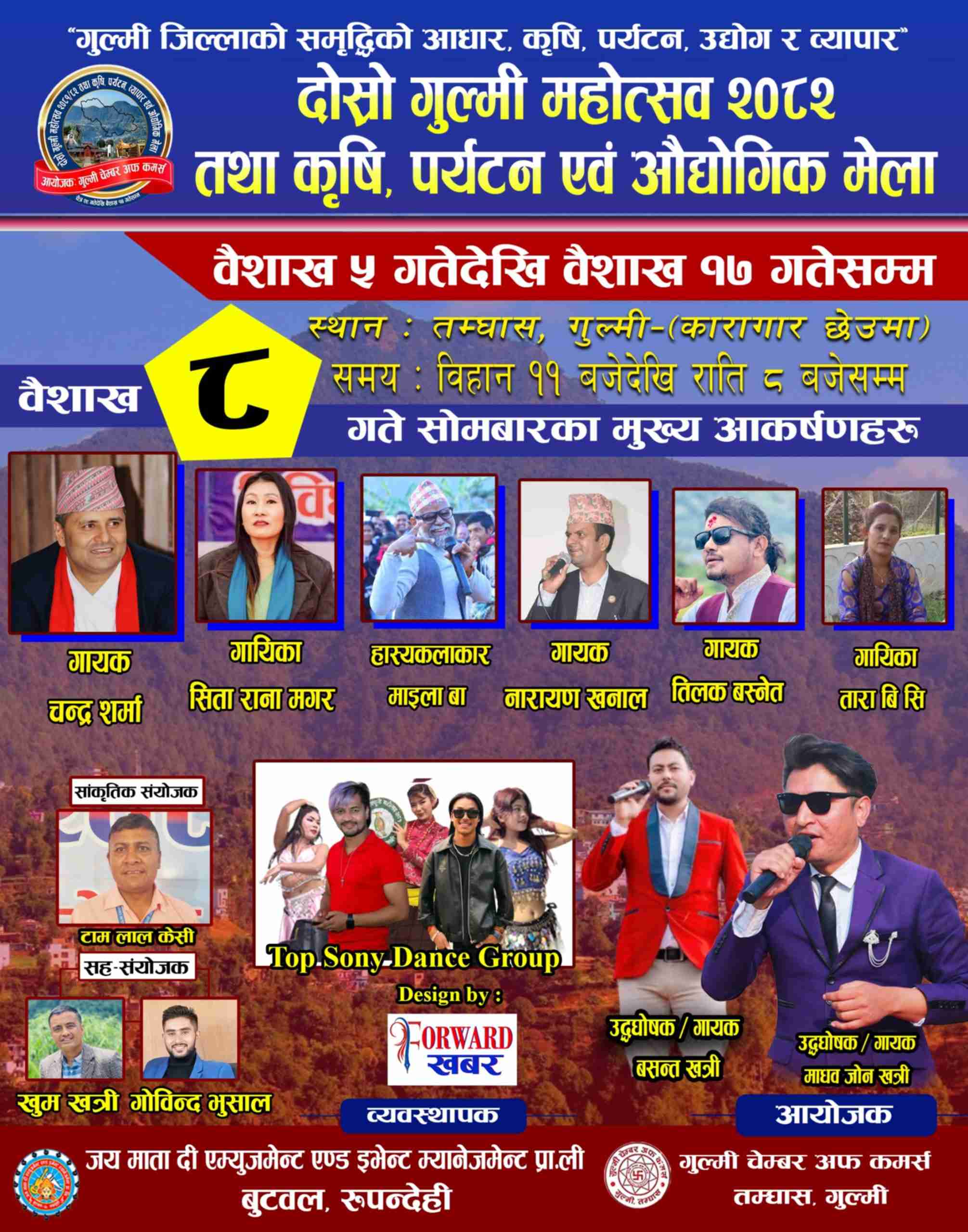 दोस्रो गुल्मी महोत्सवको चौथोदिन चर्चित गायक चन्द्र शर्मासहित अन्य...