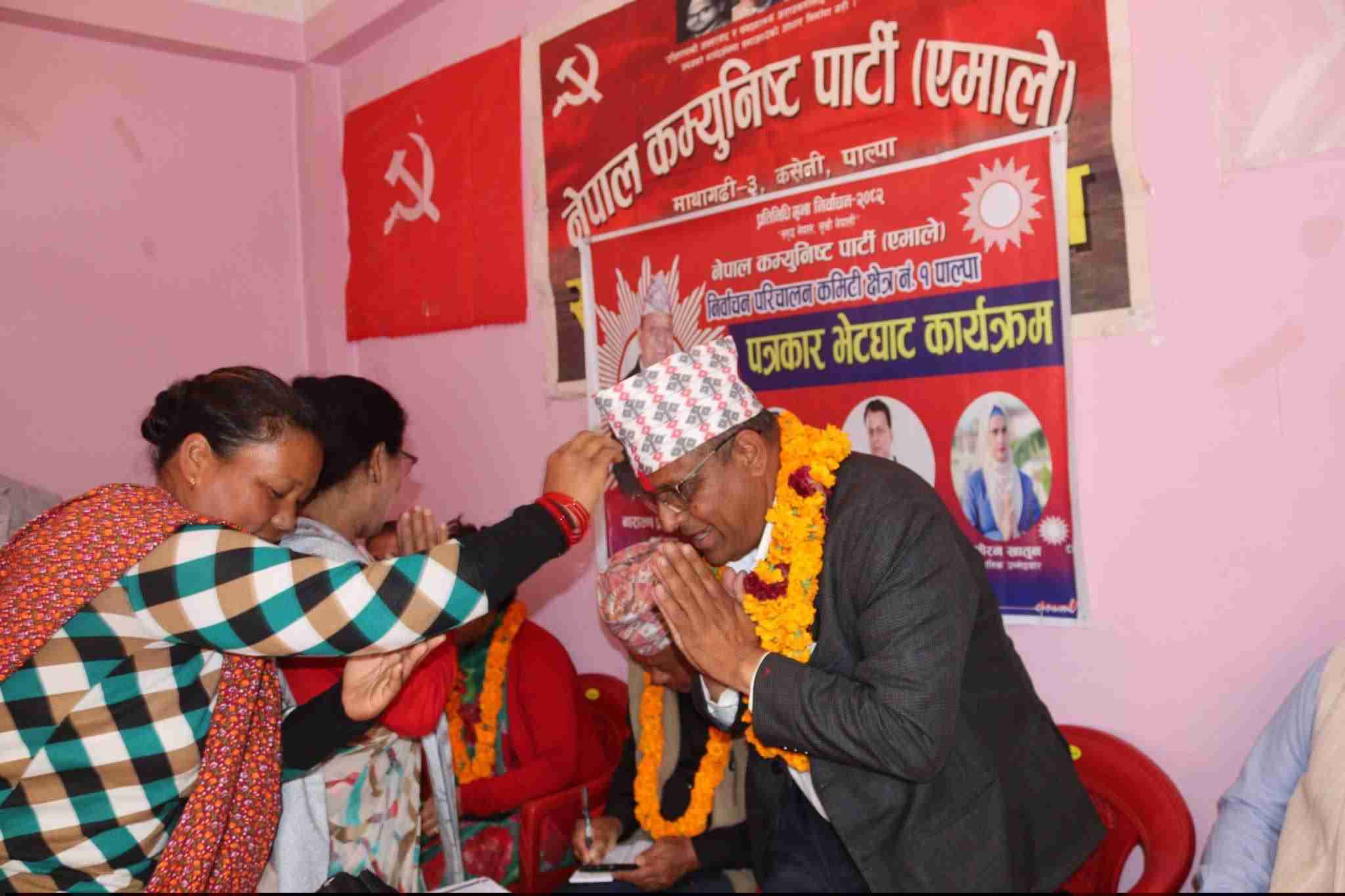नेकपा (एमाले) का तर्फबाट पाल्पा निर्वाचन क्षेत्र नं. १ का उम्मेदवार नारायण प्रसाद आचार्यले सुशासन, कृषिको आधुनिकीकरण र प...