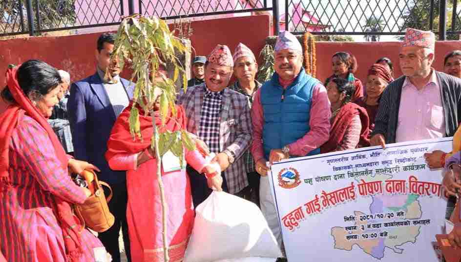 रिब्दीकोट गाउँपालिका वडा नं. ३ मा दुहुना गाई भैँसीलाई पोषण दाना व...