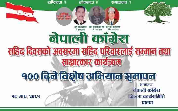 नेपाली कांग्रेस पाल्पाको १०० दिने अभियान: सहिद परिवारको घरदैलोमा...